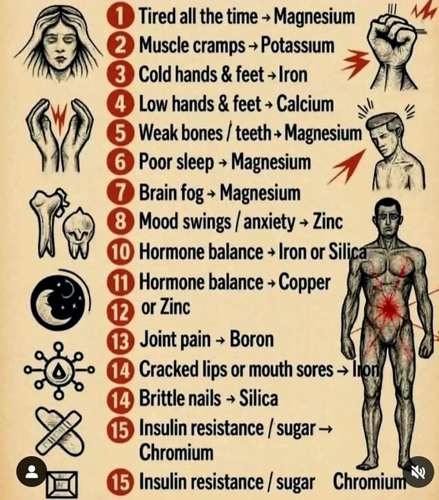 Images like the one you shared are popular because they promise simple answers: feel tired → take magnesium; cramps → potassium; anxiety → zinc.While minerals do play essential roles in health, symptoms are rarely caused by a single deficiency, and self-supplementing without context can sometimes do more harm than good. This article explains each symptom–mineral […]