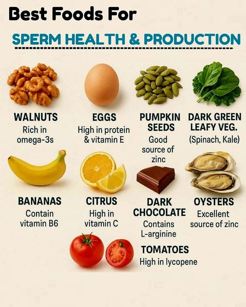 🧬 Nutrients That Matter Most for Sperm Health Healthy sperm require: Zinc → testosterone & sperm count Omega-3 fats → motility & membrane strength Antioxidants (vitamins C, E, selenium) → protect sperm DNA Folate & B12 → proper sperm formation L-arginine & carnitine → sperm movement and energy 🥗 Best Foods for Sperm Health 🦪 […]