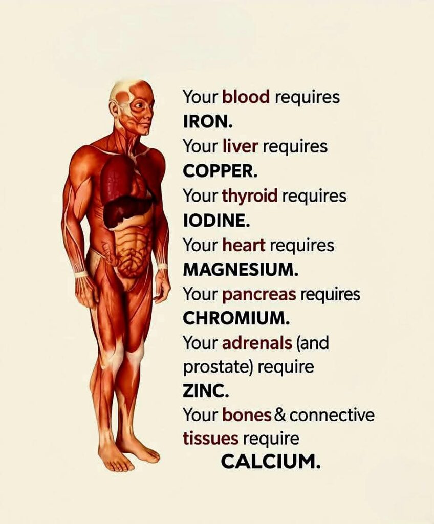 The image suggests that each organ “requires” one specific mineral. While minerals are essential, this presentation is overly simplified and partly misleading. In reality, every organ depends on many minerals working together, not just one. Below is an accurate breakdown. Iron & the Blood 🩸 ✅ Mostly Accurate Iron is essential for: Hemoglobin (oxygen transport […]