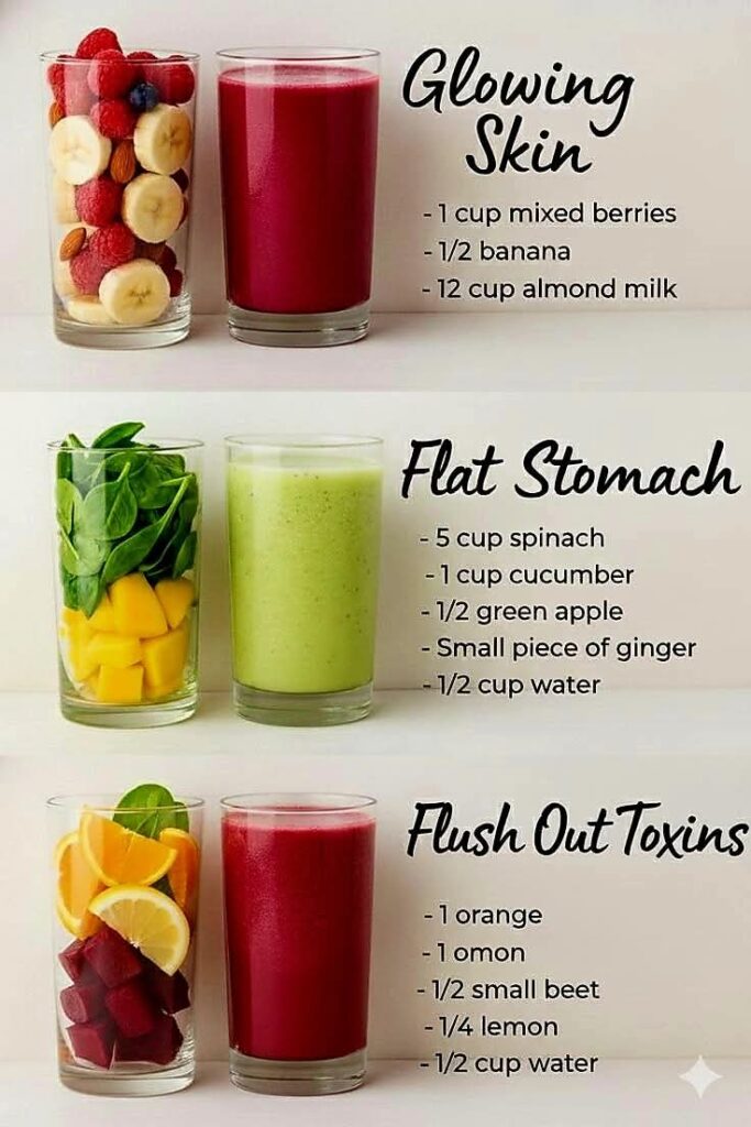 Healthy Smoothies for Everyday Wellness Smoothies are an easy and tasty way to include more fruits and vegetables in your daily routine. The image shows three simple smoothie ideas, each made with natural ingredients and designed to support general wellness. 1. Berry Smoothie for Fresh, Healthy Skin This smoothie combines mixed berries, […]
