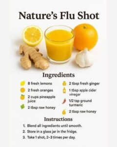 As the seasons change and cold and flu viruses begin to circulate, many of us look for natural ways to fortify our immune systems. While nothing can replace the medical advice of a doctor, certain natural ingredients have been celebrated for centuries for their health-boosting properties. The recipe for “Nature’s Flu Shot” is a powerful, nutrient-packed elixir designed to do just that.